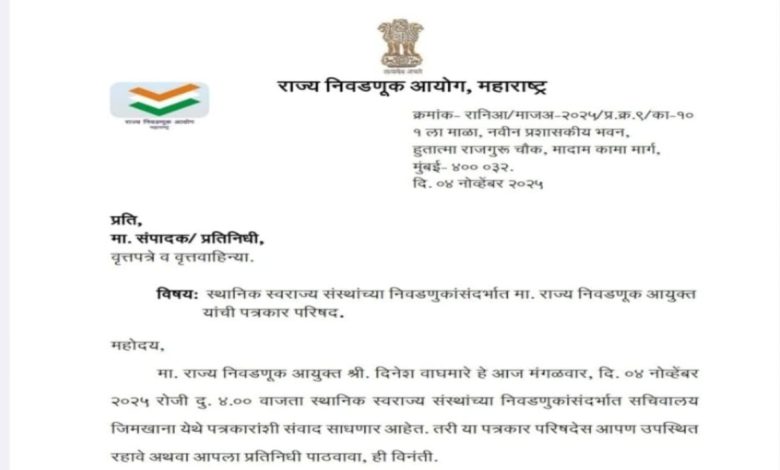 आज दिनांक 4/11/2025 रोजी स्थानिक स्वराज्य संस्थांच्या निवडणुकीच्या बाबतीत राज्य निवडणूक आयोगाची पत्रकार परिषद मुंबई…