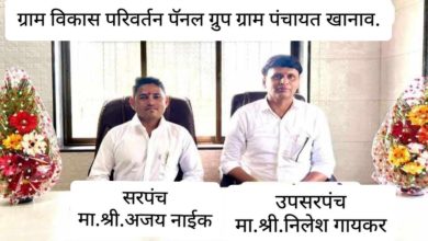 खानाव [अलिबाग] ग्रामपंचायतमध्ये ग्रामविकास परिवर्तन पॅनलचे सरपंच अजय नाईक आणि उपसरपंच निलेश गायकर यांनी पदभार स्वीकारला