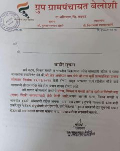 श्रीराम मूर्ती प्राणप्रतिष्ठा उत्सवानिमित्त 22 जानेवारी 2024 रोजी बेलोशी-अलिबाग ग्रामपंचायत हद्दीतील मटन,चिकन,मच्छी, चायनीज, धाबे आणि दारूचे दुकाने बंद ठेवावी अशी जाहीर सूचना सरपंच कृष्णा रामभाऊ भोपी यांनी काढली आहे