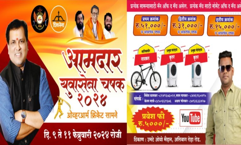 अजय गायकर युवासेना जिल्हा समन्वयक रायगड शिवसेना शिंदेगट आयोजित आमदार युवासेना चषकाच्या तिसऱ्या पर्वाला दिनांक 9 फेब्रुवारी 2024 पासून सुरुवात होत आहे या स्पर्धेमध्ये प्रथम क्रमांक 51 हजार व आकर्षक चषक,द्वितीय क्रमांक 31 हजार व आकर्षक चषक आणि तृतीय क्रमांक 15 हजार व आकर्षक चषक असे बक्षीस असतील तसेच मालिकावीरासाठी सायकल असेल,उत्कृष्ट फलंदाजासाठी कुलर असेल आणि उत्कृष्ट गोलंदाजासाठी कुलर असेल