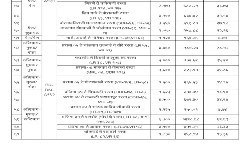 अलिबाग-रायगड मोरोंडे ते बारशेत रस्त्यासाठी मुख्यमंत्री ग्राम सडक योजने मधून 12 कोटी 28 लाख मंजूर