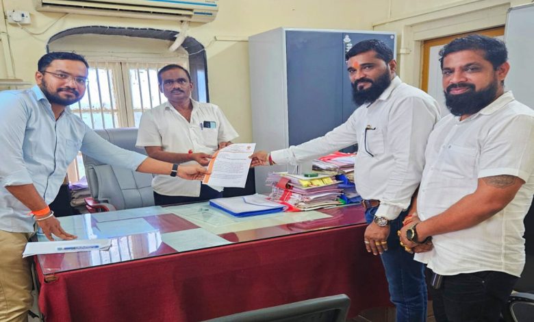 बेलकडे ते रोहा रस्त्यावर पडलेले खड्डे तात्काल दुरुस्त करण्यासाठी ठाकरे गटाचे अलिबाग तालुकाप्रमुख महेश (शंकर) गुरव यांचे सार्वजनिक बांधकाम विभागाला निवेदन