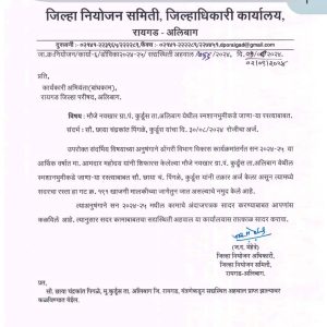 त्यानुसार जिल्हा नियोजन अधिकारी ज.द.मेहेत्रे यांनी कार्यकारी अभियंता बांधकाम रायगड जिल्हा परिषद अलिबाग यांना सदर कामाबाबत सद्यस्थितीचा अहवाल जिल्हा नियोजन समिती जिल्हाधिकारी कार्यालय रायगड यांना सादर करायला सांगितलेला आहे